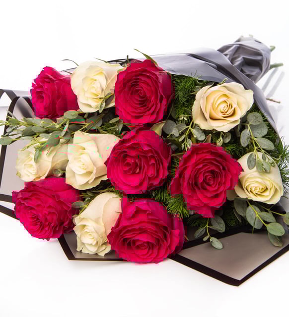 Ramo De 12 Rosas Rojas Y Blancas